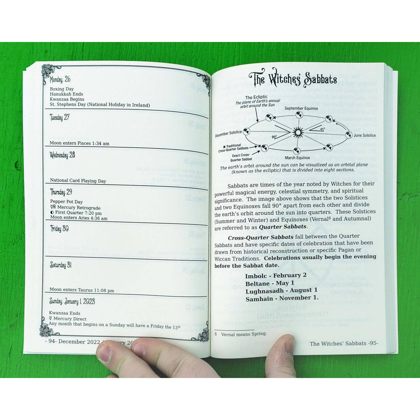 **THIS IS FOR 2022** THE 2023 EDITION IS HERE! Search our Faire shop for "Practical Witch's Almanac 2023" to order! Paperback. Published by Microcosm! The special 25th-anniversary edition of Practical Witch’s Almanac. New resources, spells, recipes, & practices pair with a selection of the best content from the last quarter century of Friday Gladheart's iconic almanac--presented in fresh, modern light. Track important dates in the wheel of the year on weekly calendar pages that include plenty of room to write in your own dates, appointments, and habits. Set your objectives to achieve your goals using the Moon Phase planner pages. Moon Phase Planner pages help you set your objectives to achieve your goals effectively while using natural Lunar cycles. Monthly Study Guides & magickal correspondence make this almanac a resource for years to come, with a selection of tarot cards, crystals, herbs, botanicals, deities, runes, recipes, rituals, DIY projects, crafts, and insightful articles!
