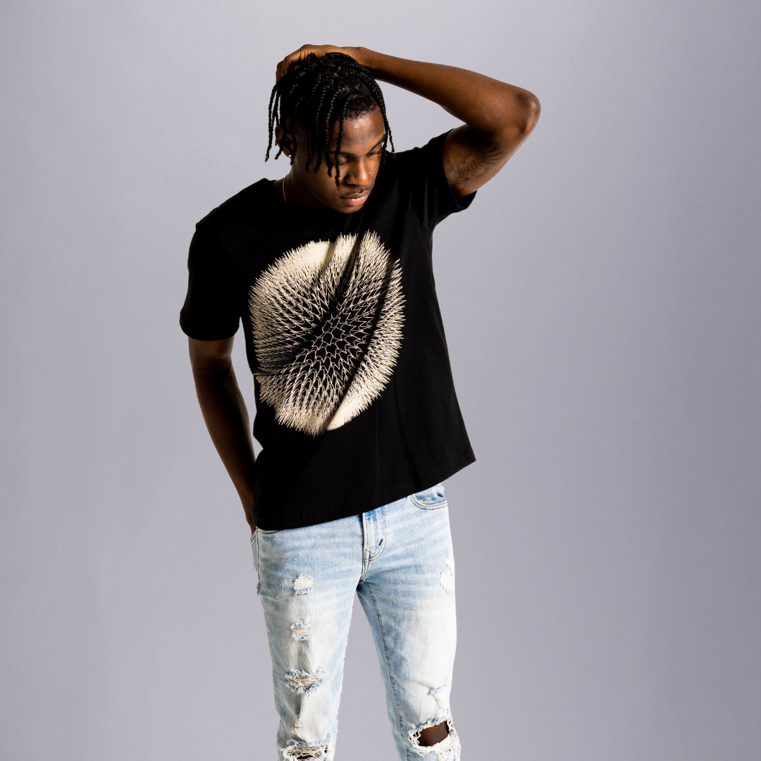 Neither solid nor liquid, gas, or thought, this sphere of never-ending spikes and blurs represents the constant state of change each, and every one of us goes through on a normal day to face any situation and come out above everything. Wear this when the going gets tough and prove that you, too, can adapt to anything.