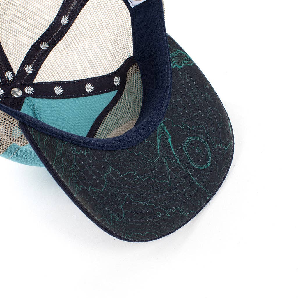 Our Hawai'i Volcanoes National Park hat... with funky aloha colors and a topographic map undervisor.