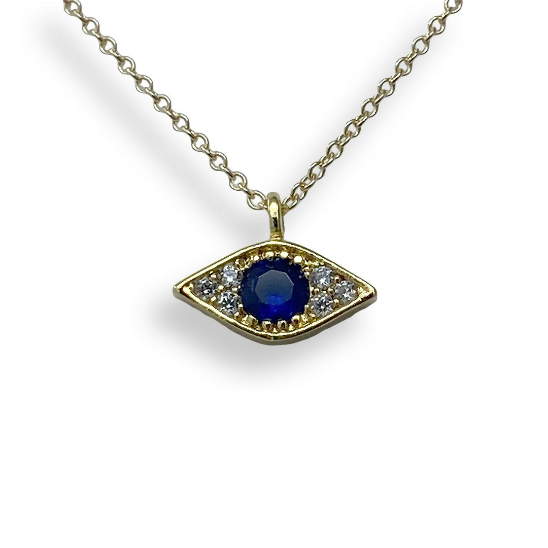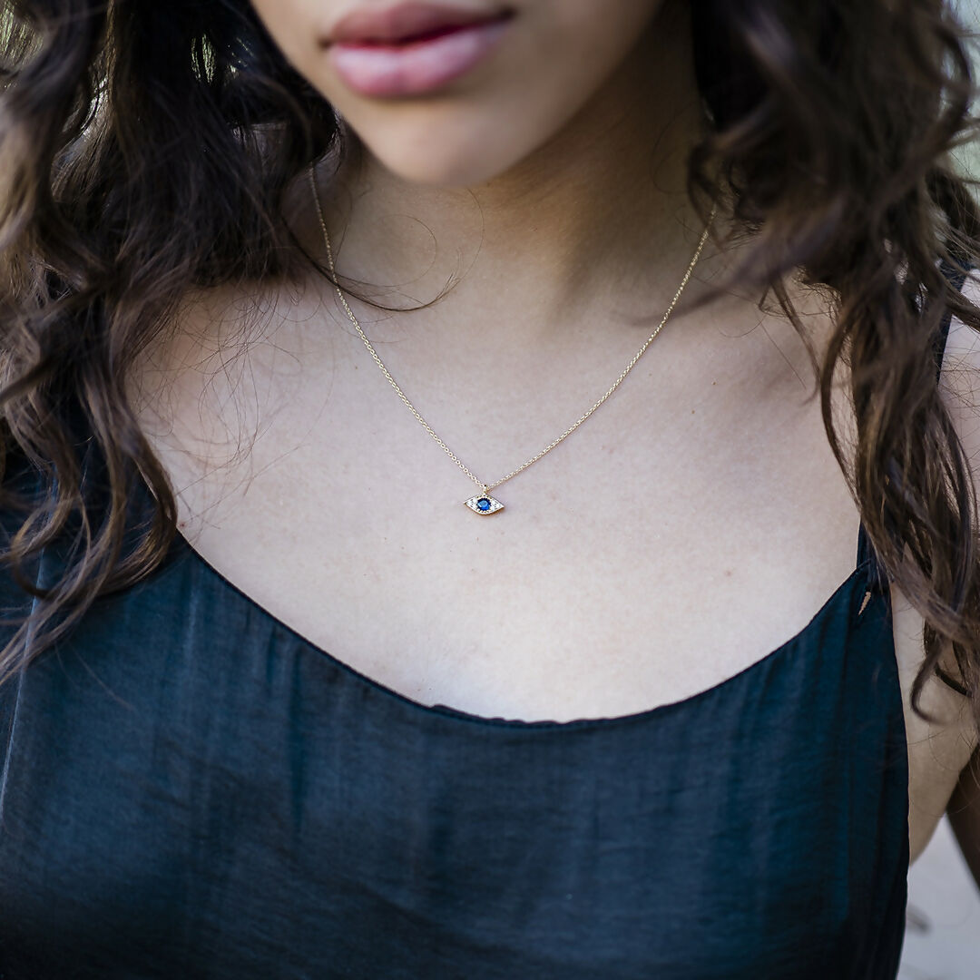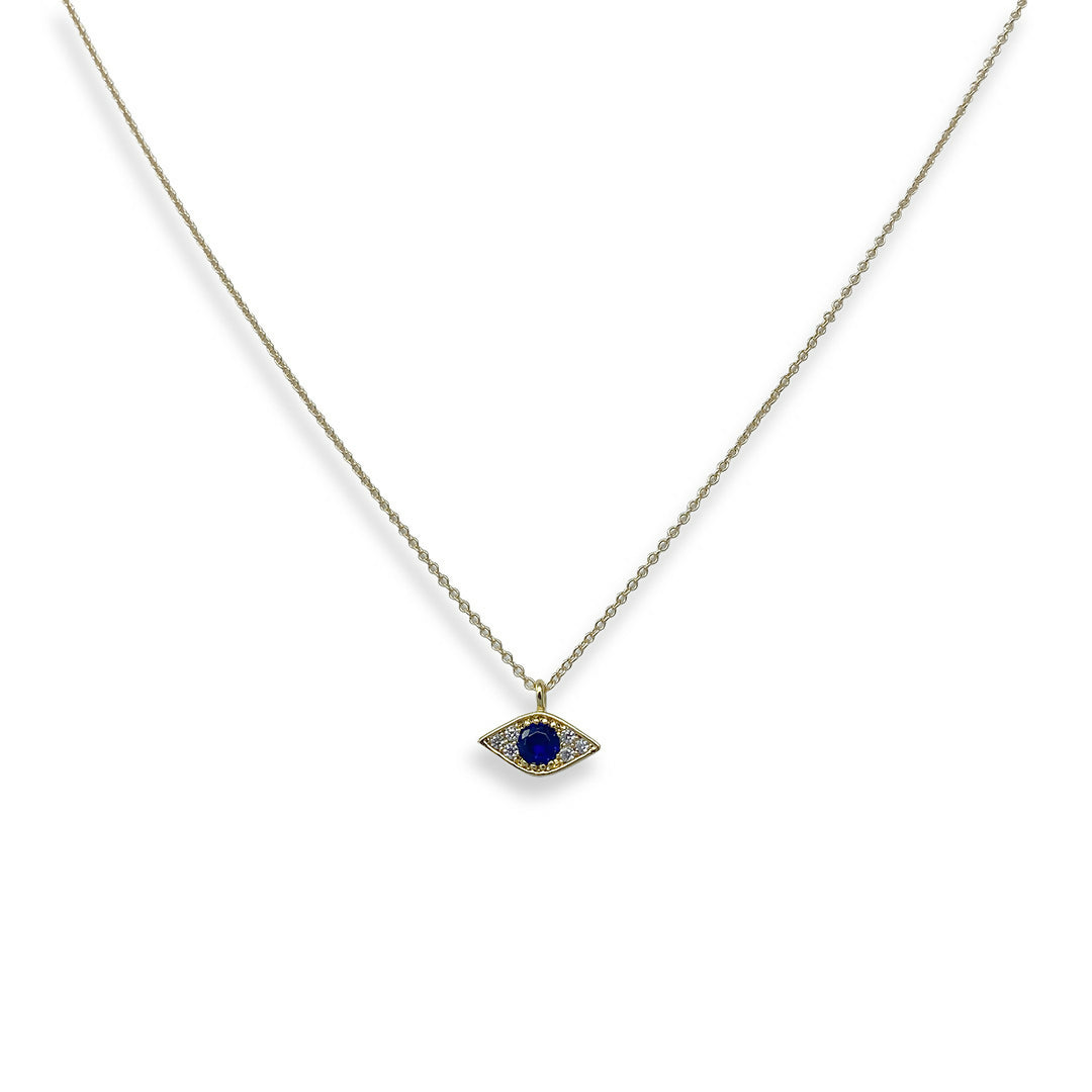 Tiny sparkly crystal evil eye on delicate gold cable chain.