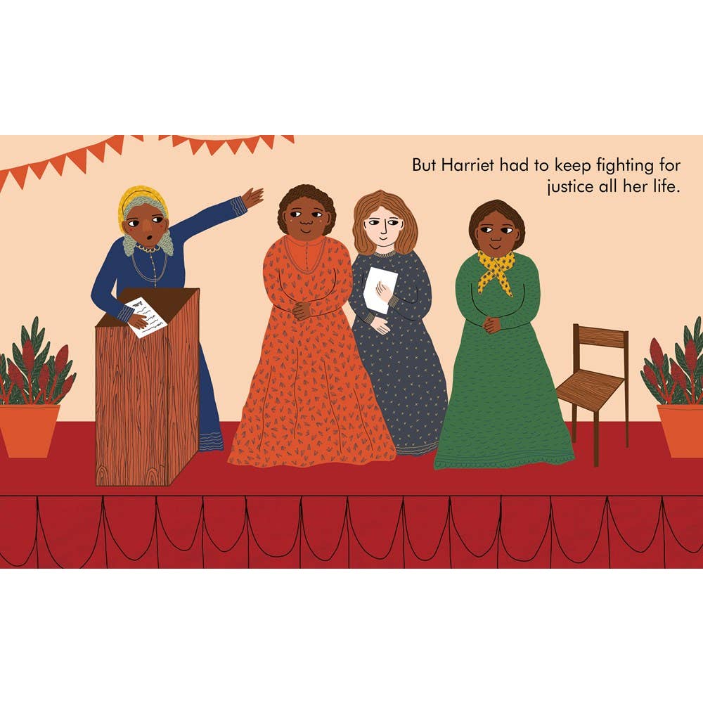 Little Harriet was born into slavery on a plantation in Maryland. Though life had many obstacles, Harriet persisted in her dream of being free. She used all of her resilience and courage to escape, journeying north on the Underground Railroad. Despite the danger of the journey, Harriet made it her mission to return to the South many times, fighting her whole life to help others on the same path to freedom. This board book introduces babies and toddlers to the inspiring life of Harriet Tubman, the abolitionist and Underground Railroad conductor. Short discount title.