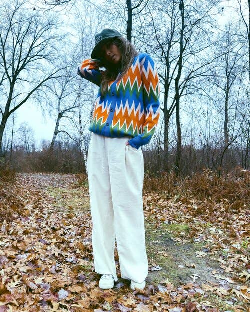 Zig Zag Knit Jacquard Polo Cardigan
