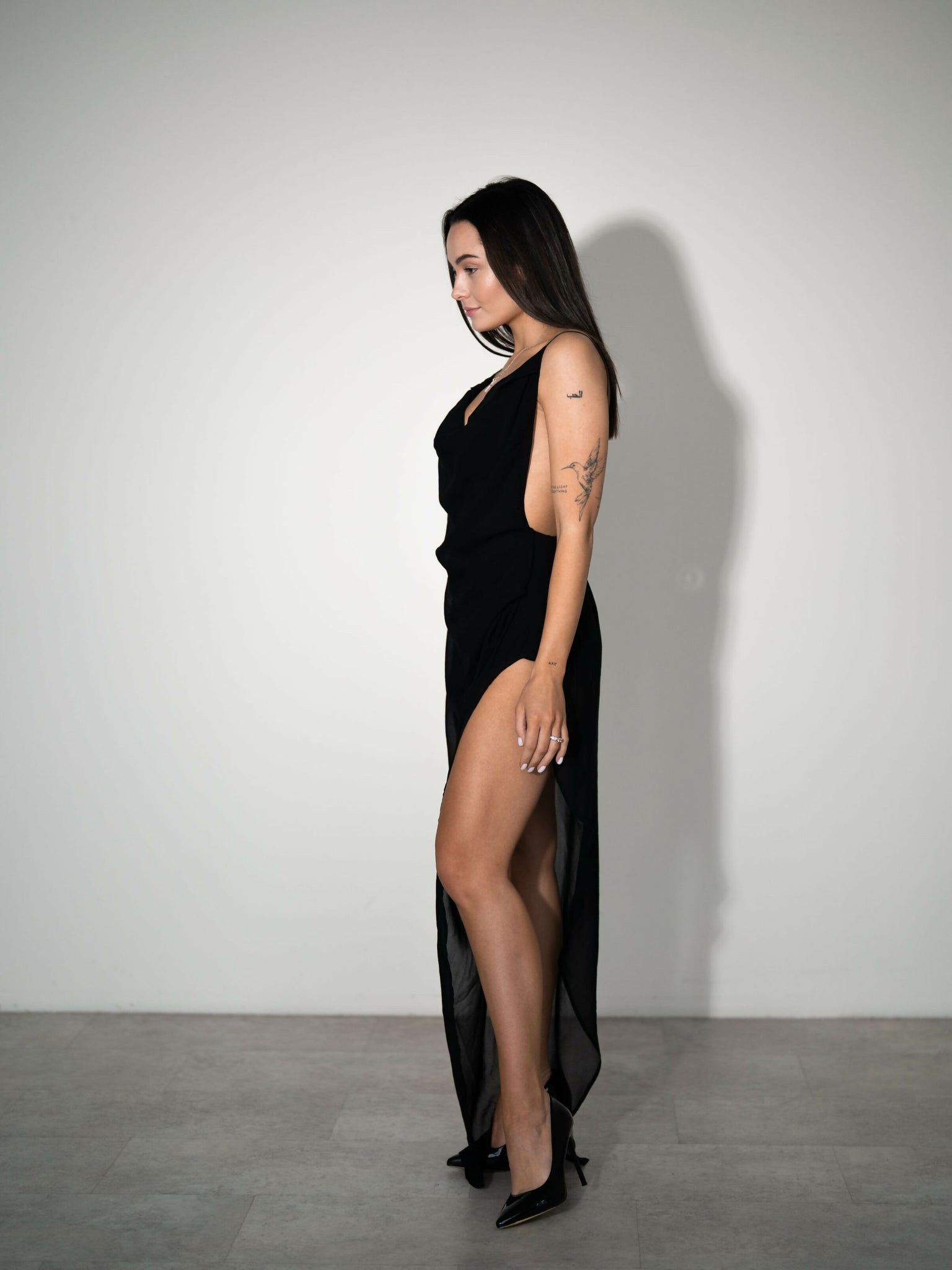 Step into a world of mystique with the Black Mirage dress, where elegance meets allure.