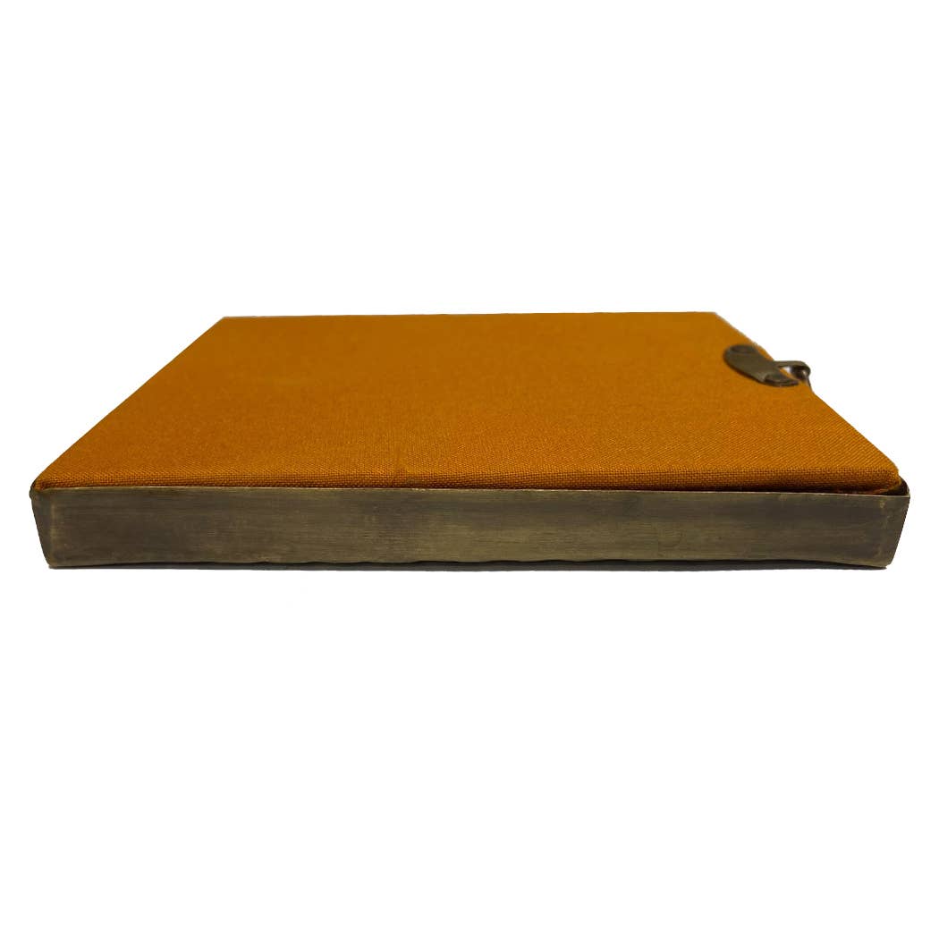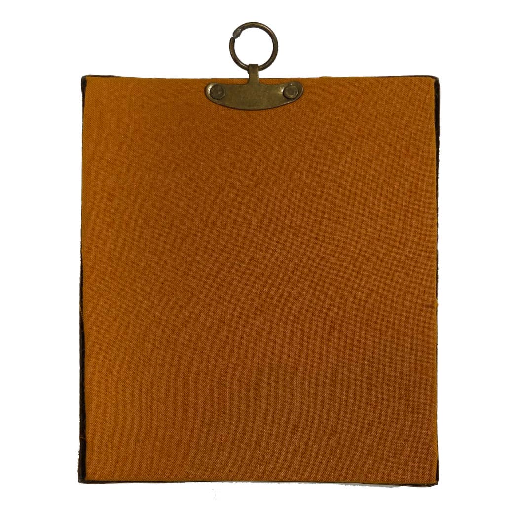 -Antique-look embossed brass frame with fabric backing