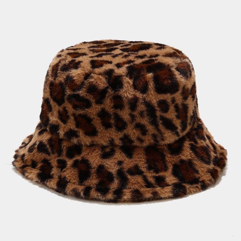 Warm Fleece Leopard Print Bucket Hat: MULTICOLOR