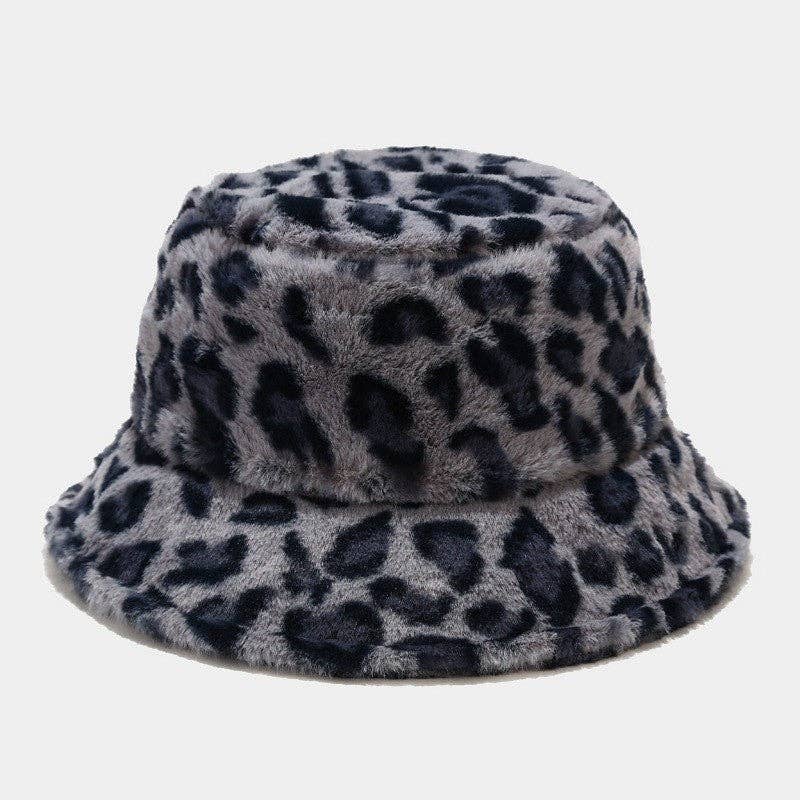 Warm Fleece Leopard Print Bucket Hat: WHITE
