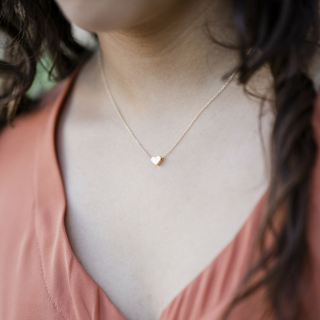 Tiny heart bead on an adjustable a delicate gold cable chain. Great for layering.