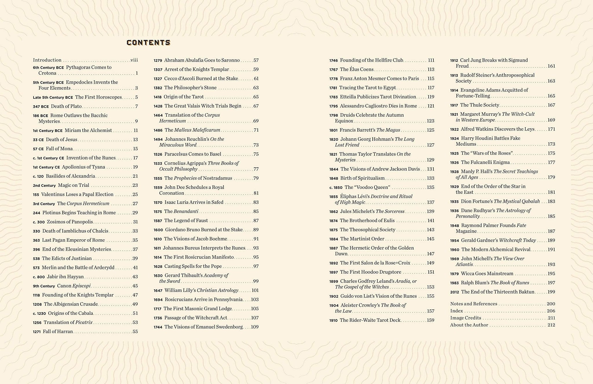 Explore the occult from ancient times to the modern day with one of its most respected scholars and practitioners. Take an enlightening journey through occult history, exploring 100 dramatic incidents, arcane knowledge, and key historical figures from around the world. John Michael Greer delves into two millennia of tradition, from the earliest alchemists to pagan rituals; from the Philosopher's Stone to Cabala, the first tarot, and the Knights Templar; and from the first horoscopes to fortune-telling trials and the birth of modern witchcraft, or Wicca. Each entry features a stunning image or intriguing item of ephemera. Hardcover book with printed laminated cover; 6 3/4 x 8 3/4 inches; 224 pages.