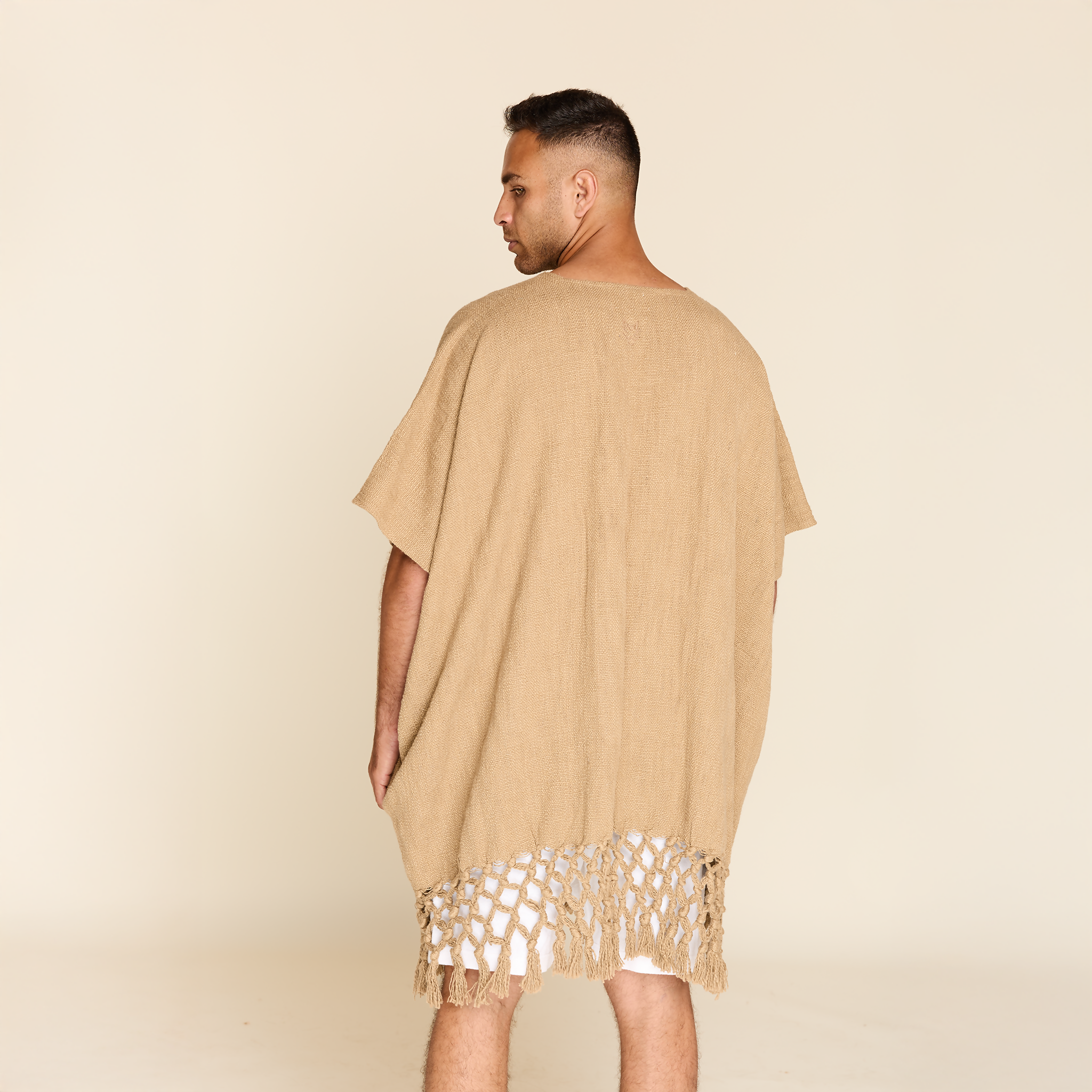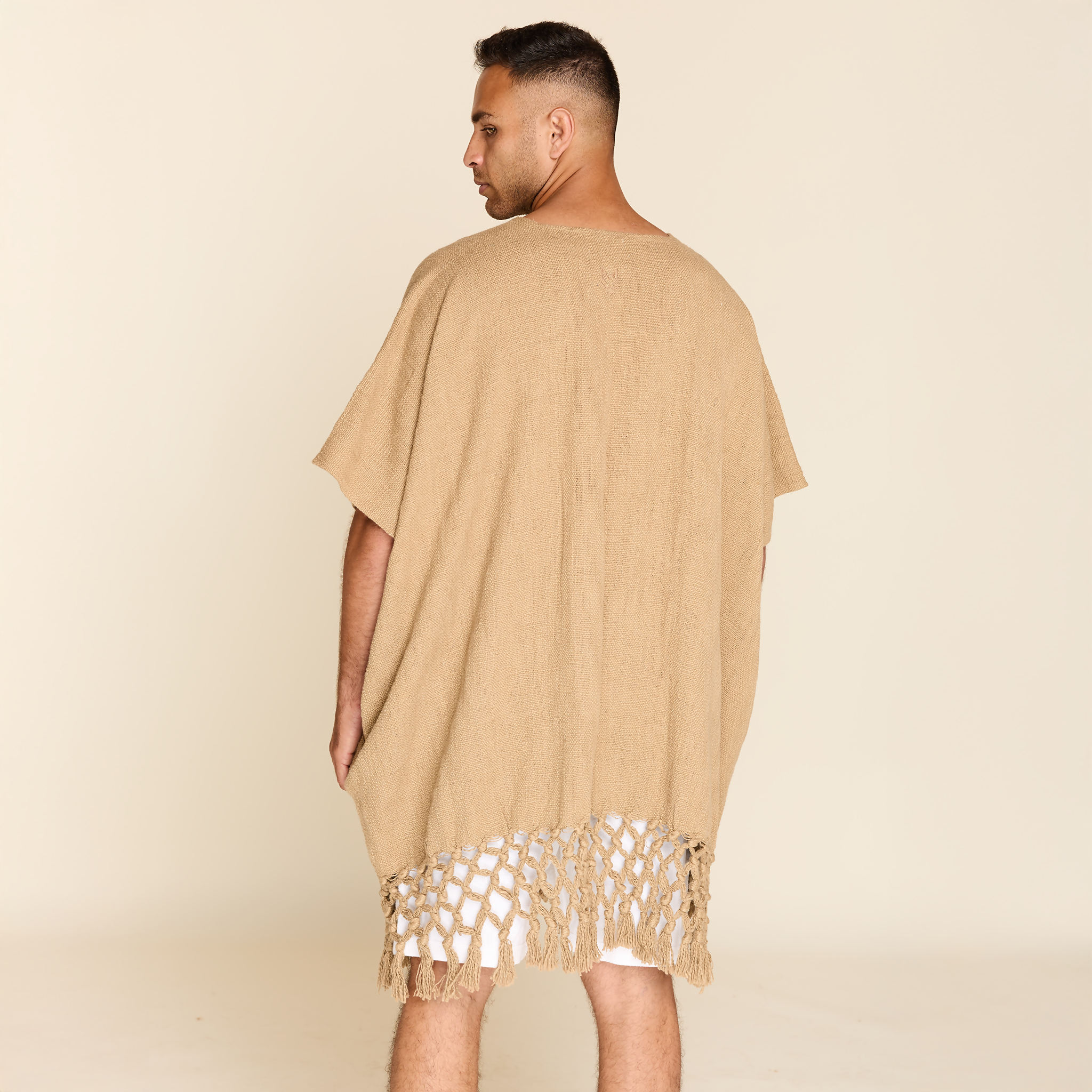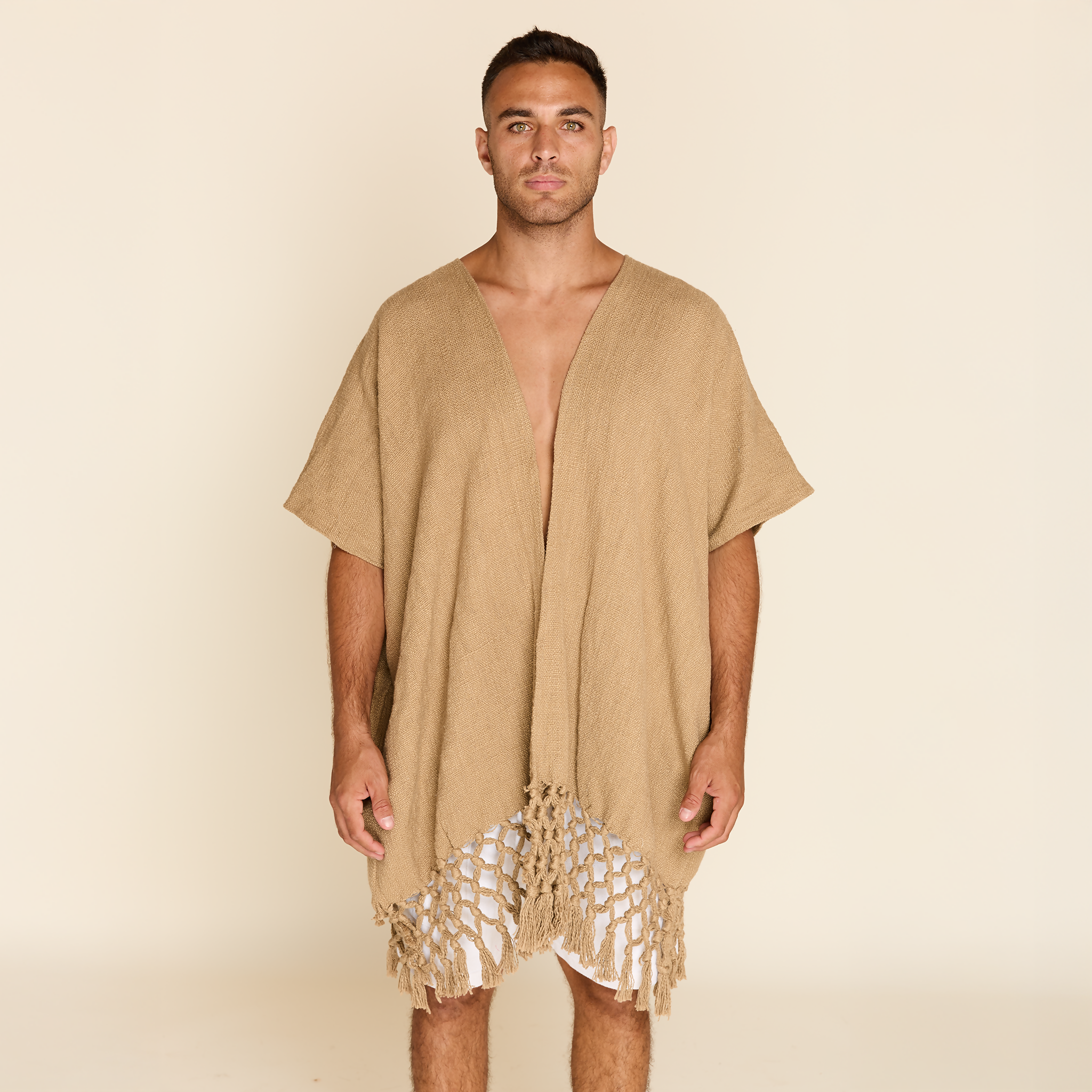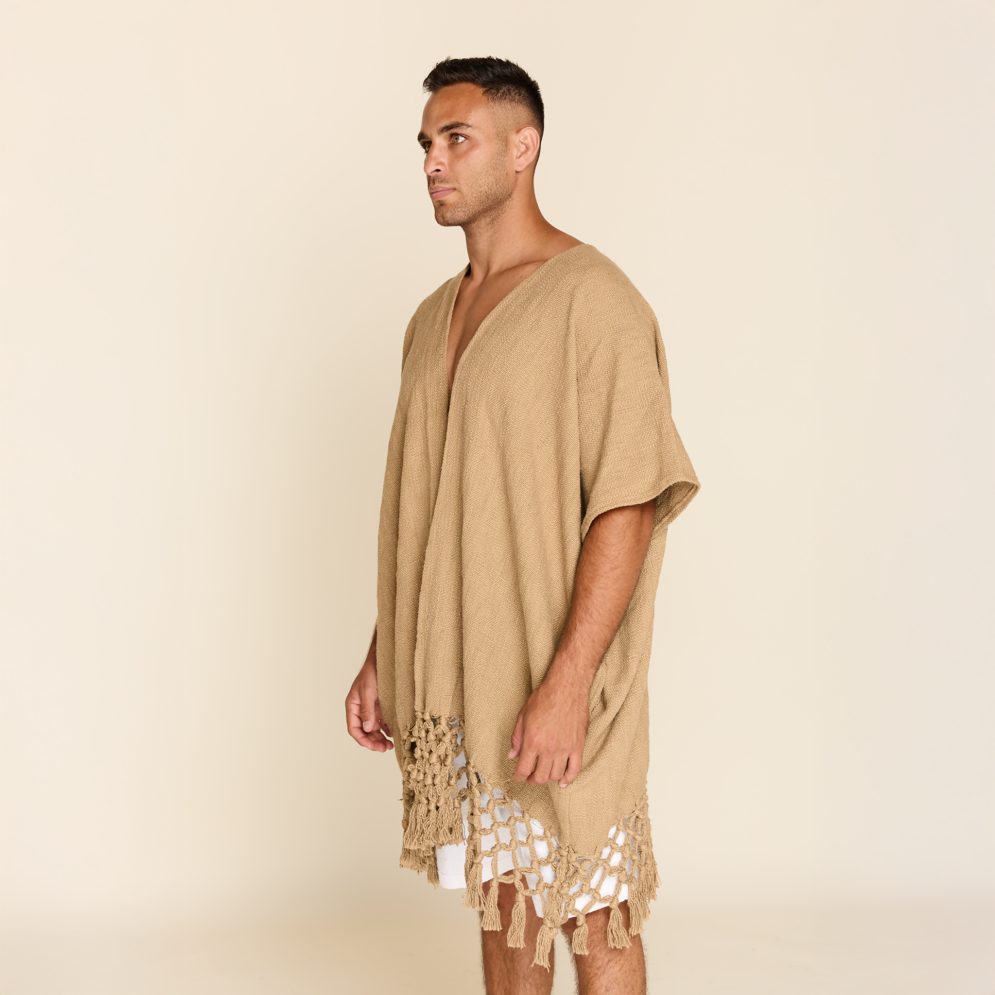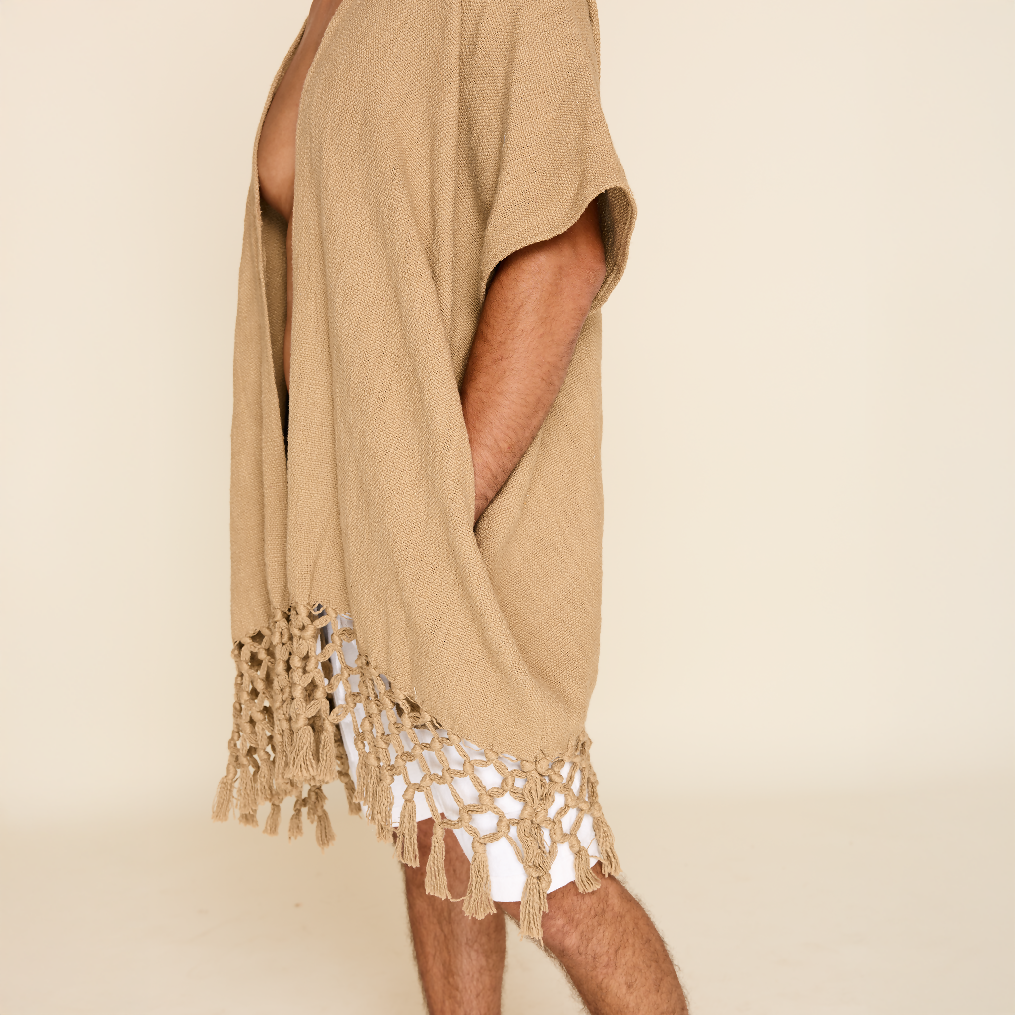 Organic cotton kimono with fringes. Has 2 comfy pockets.